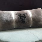 Imperial Chinchilla Rex fur cushion with contrasting personalised monogram. Exemplary cratsmanship in fur.